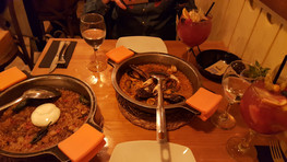 Puis, retour à l'hôtel où nous avons pu profiter de notre spa et remarquer que nous avions pris des couleurs au visage, l'heure de manger arrive: nous nous sommes donc rendues dans un petit restaurant super mignon dans le quartier de El Raval (15 minutes à pied de notre hôtel): ARUME. Il me l'a été conseillé par un ami et je n'ai pas été déçue. Par contre, je vous conseille de réserver car même au mois de mars, le restaurant était bien rempli, nous avons eu de la chance d'arriver avant 20 heures et d'avoir une table. Bref, parlons un peu de ce qu'on y mange: j'ai pris une paella au canard (j'en salive encore) et ma mère a pris une paella aux fruits de mers. Les deux étaient délicieuses. Nous avions avec ça un grand (GRAND!) verre de sangria et nous nous sommes faites plaisir en prenant un dessert. Et ce qui nous a beaucoup plu c'est que lorsqu'ils nous ont donné l'addition, nous avons eu droit à un verre de Baileys chacune (et dieu sait qu'on adore ça). Nous en avons eu pour un peu moins de 30 euros chacune, ce qui les vaut largement. Et en plus de ça, on a eu un accueil très agréable et chaleureux. FONCEZ-Y !!!